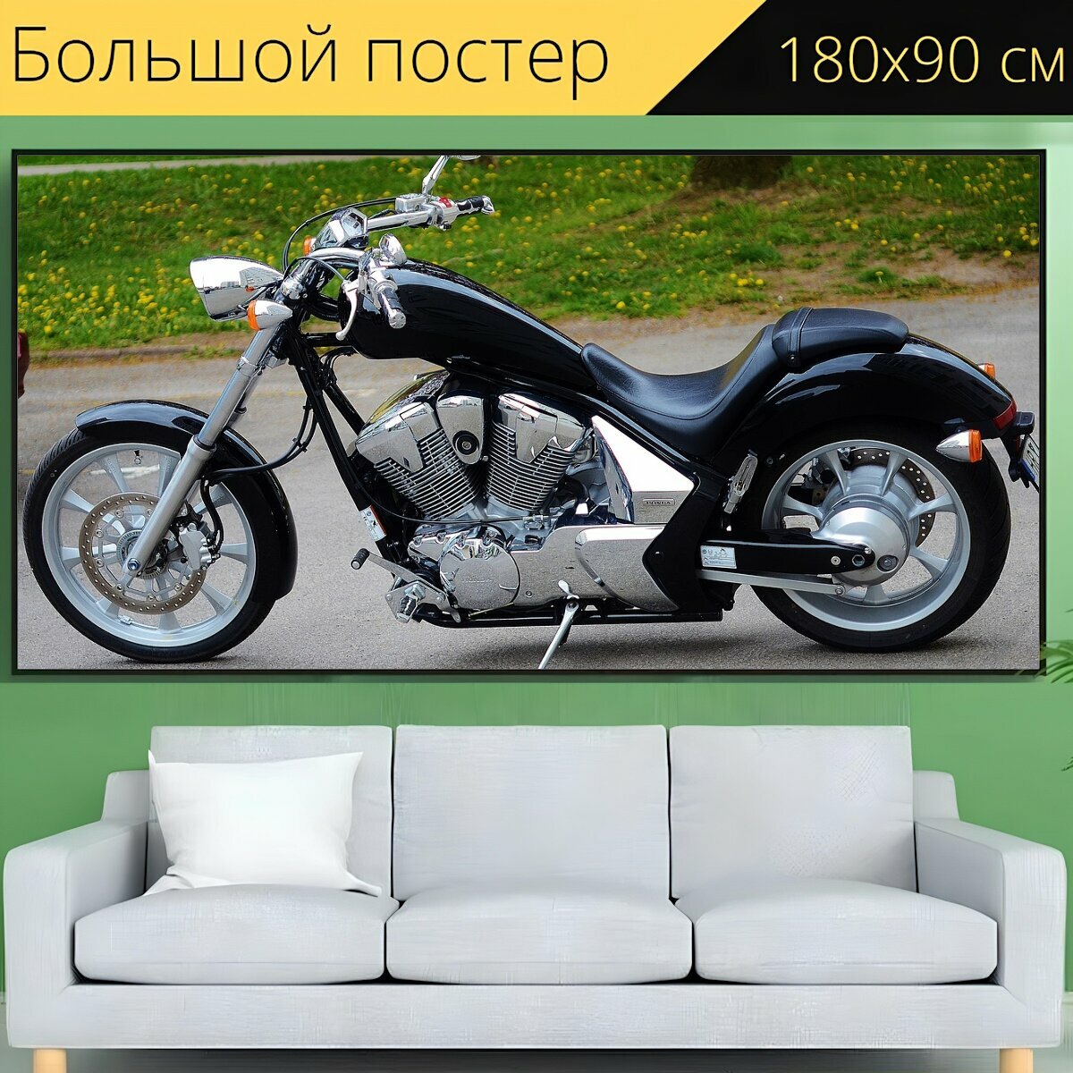 Большой постер "Мотоцикл, пересекать, скорость" 180 x 90 см. для интерьера интересное: