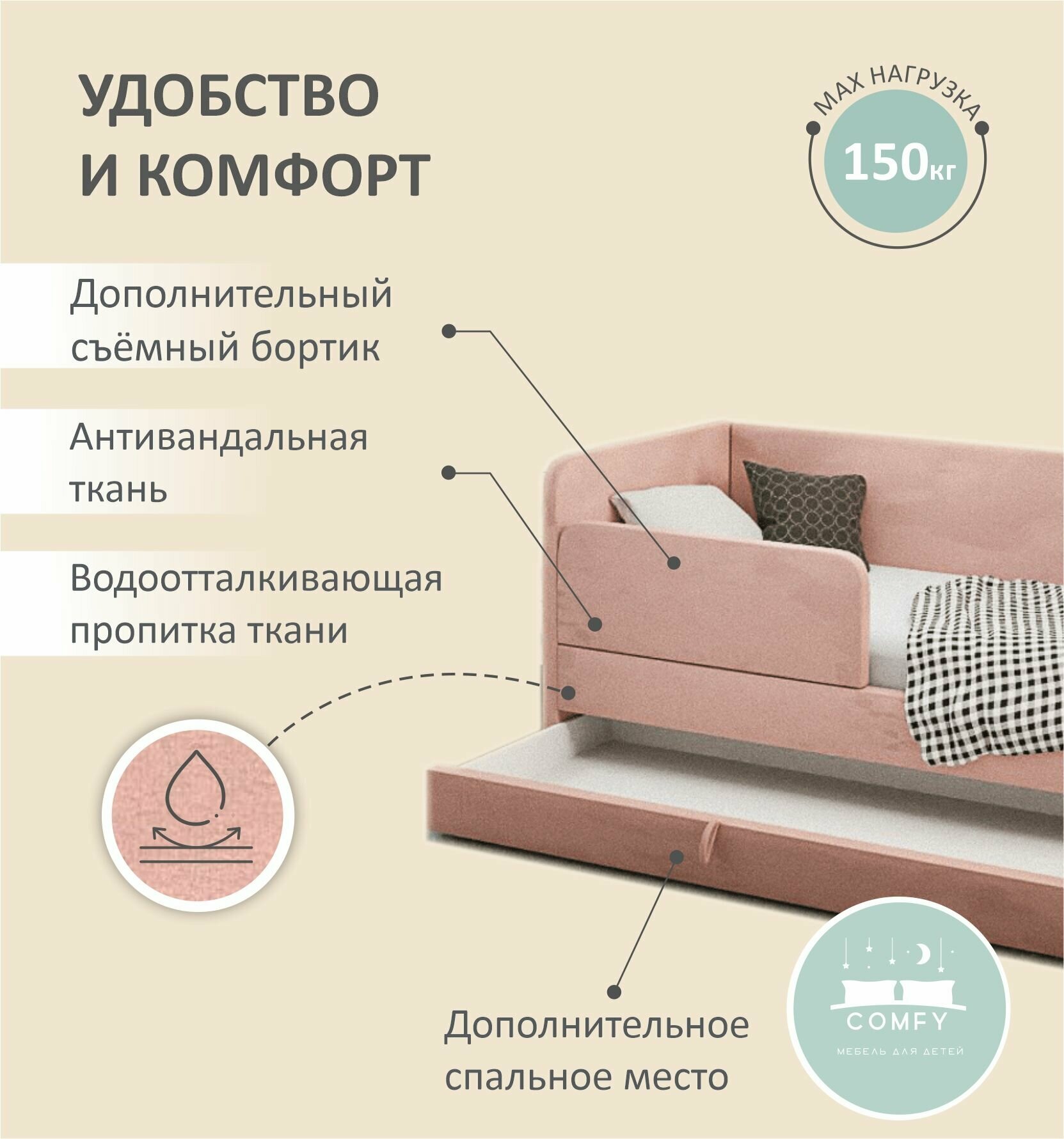 Детский диван-кровать Майя Лайт 180х90 см розовый с выкатным ящиком и бортиком Кровать детская от 3х лет Без матраса интересное: