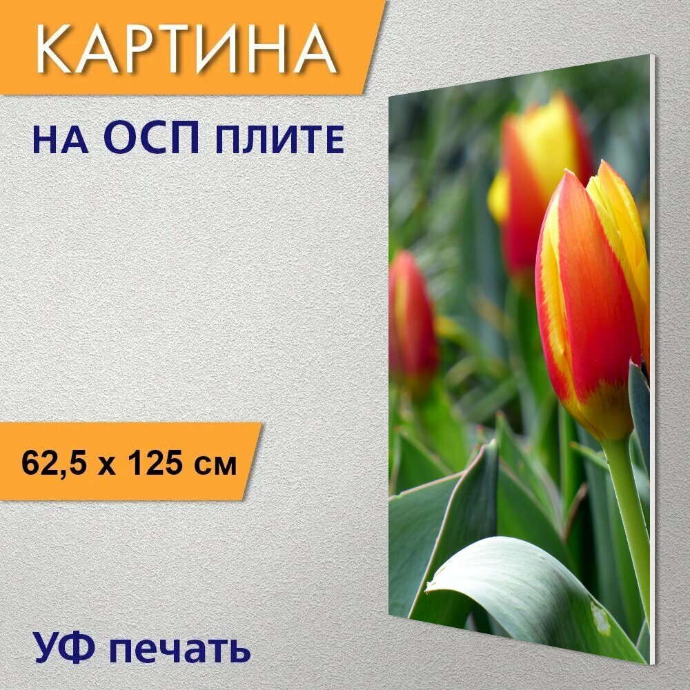 Вертикальная картина на ОСП "Тюльпан, цветок, природа" 62x125 см. для интерьериа интересное:
