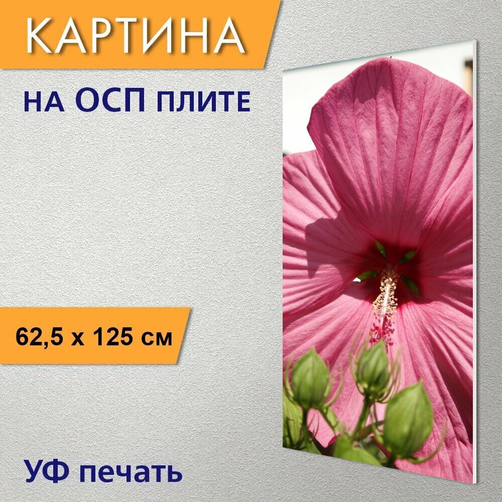 Вертикальная картина на ОСП "Цветок, цвести, розовый" 62x125 см. для интерьериа интересное: