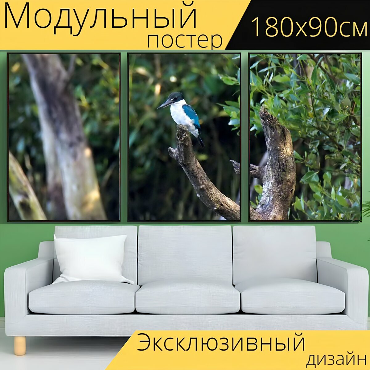 Купить Модульный постер "Король, рыболов, дикий" 180 x 90 см. для интерьера