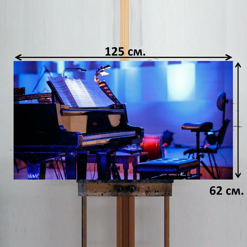 Картина на ОСП 125х62 см. "Пианино, классический, инструмент" горизонтальная, для интерьера, с креплениями интересное:
