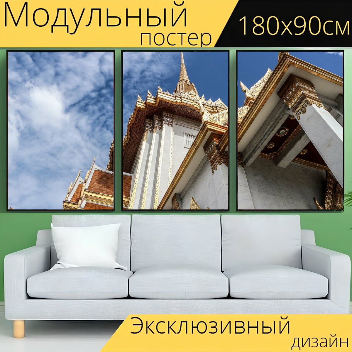 Модульный постер "Храм, башня храма, таиланд" 180 x 90 см. для интерьера интересное:
