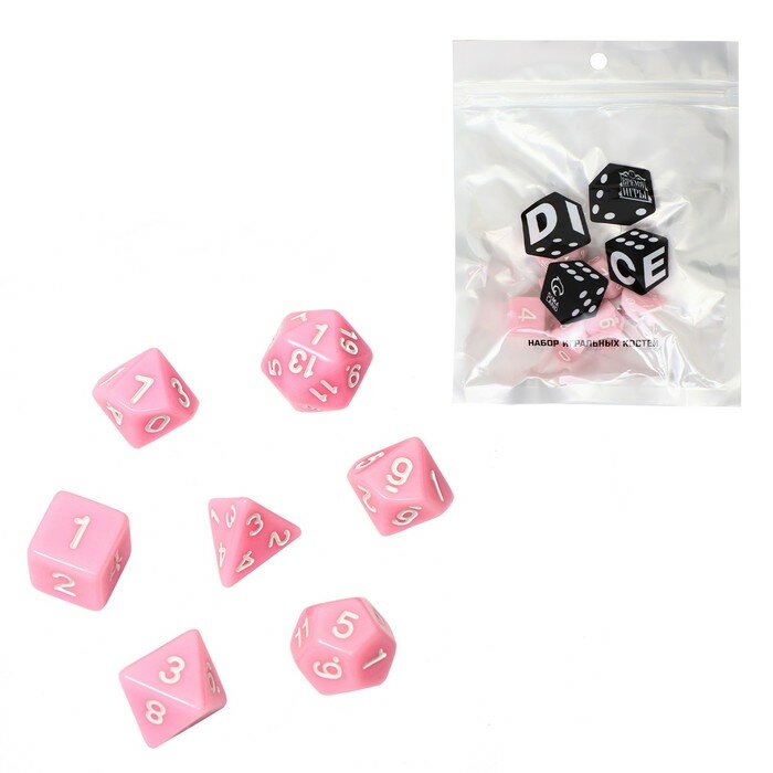 Набор кубиков для D&D (Dungeons and Dragons, ДнД) "Время игры", серия: D&D, 7 шт, розовые интересное:
