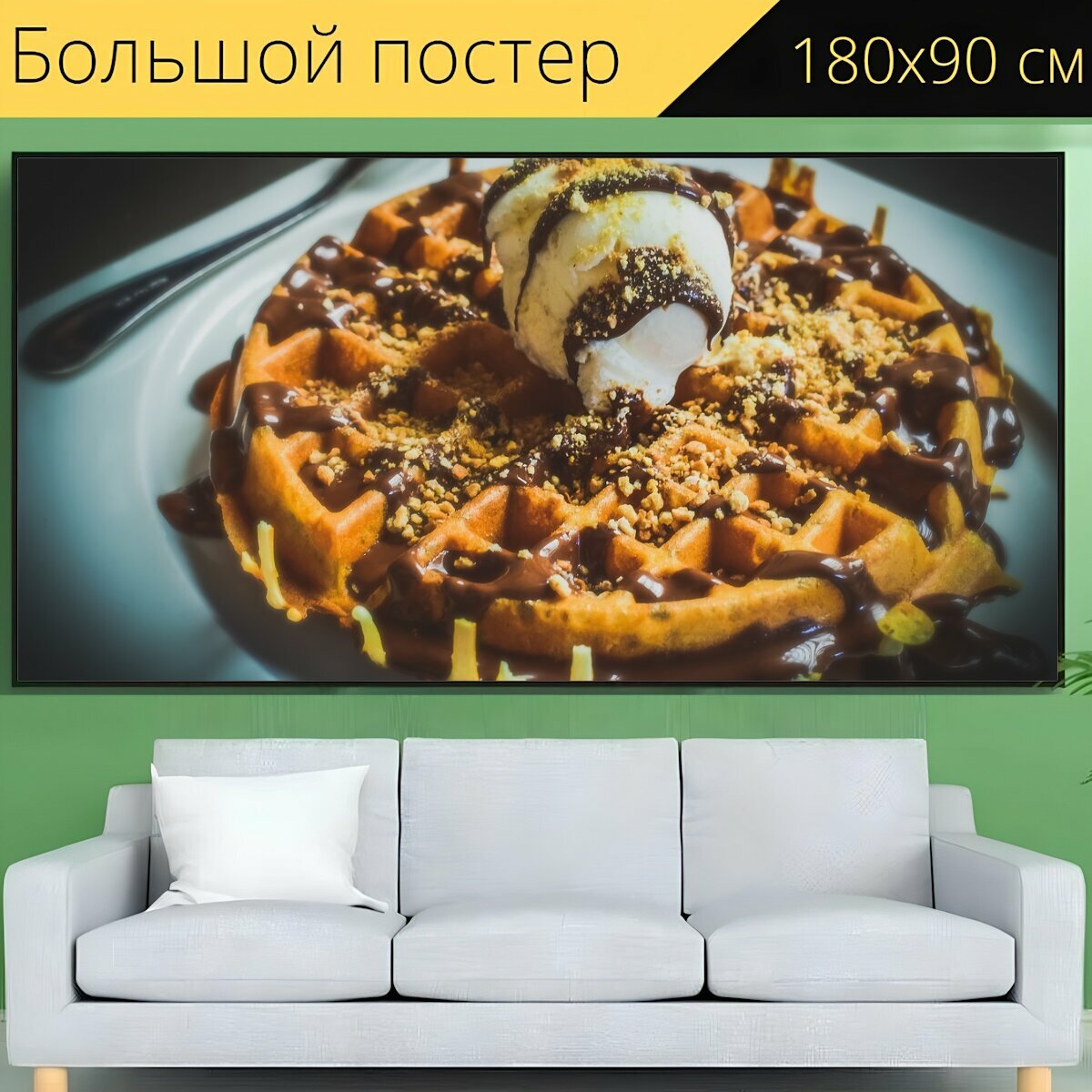 Купить Большой постер "Вафля, мороженое, десерт" 180 x 90 см. для интерьера