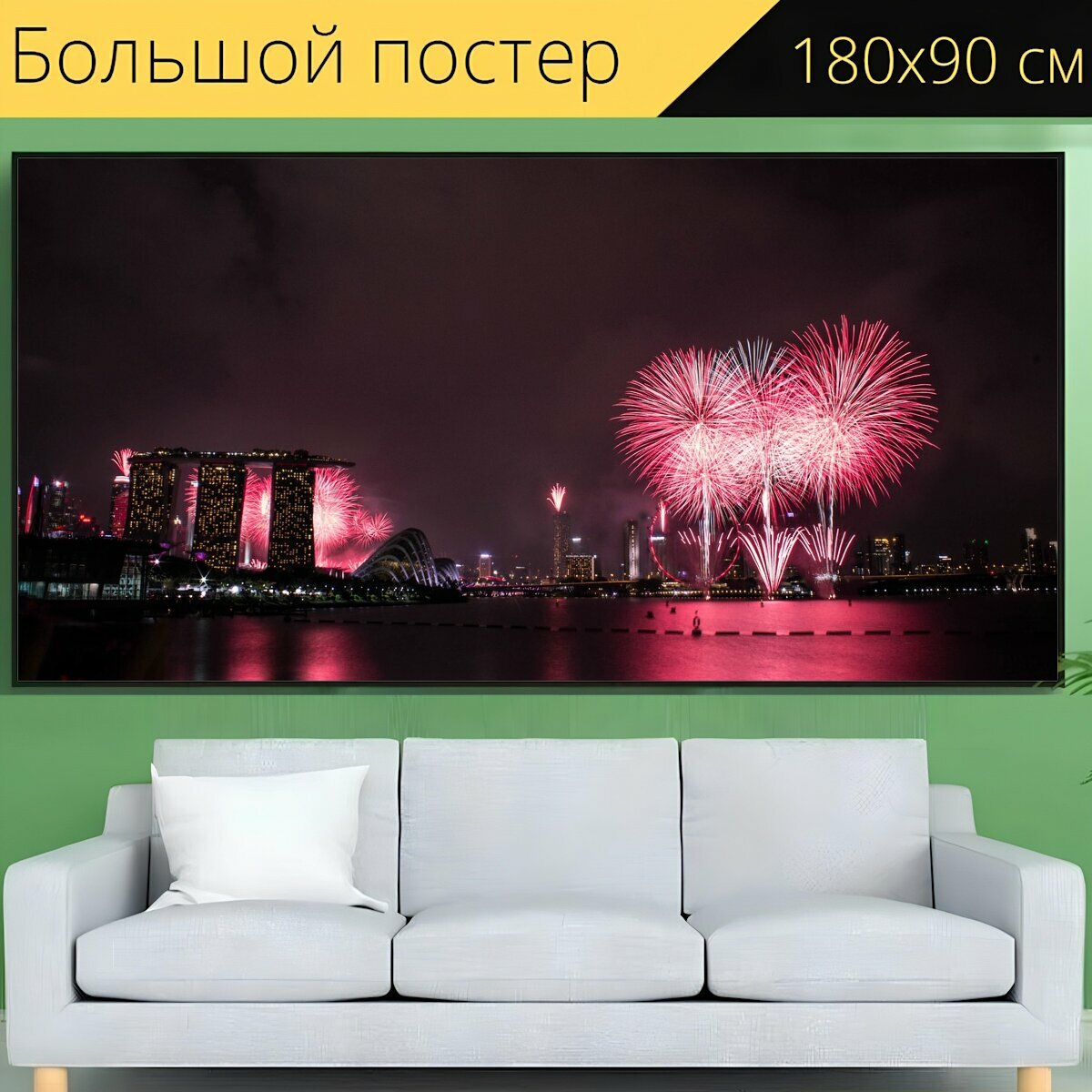 Большой постер "Фейерверк, празднование, праздновать" 180 x 90 см. для интерьера интересное: