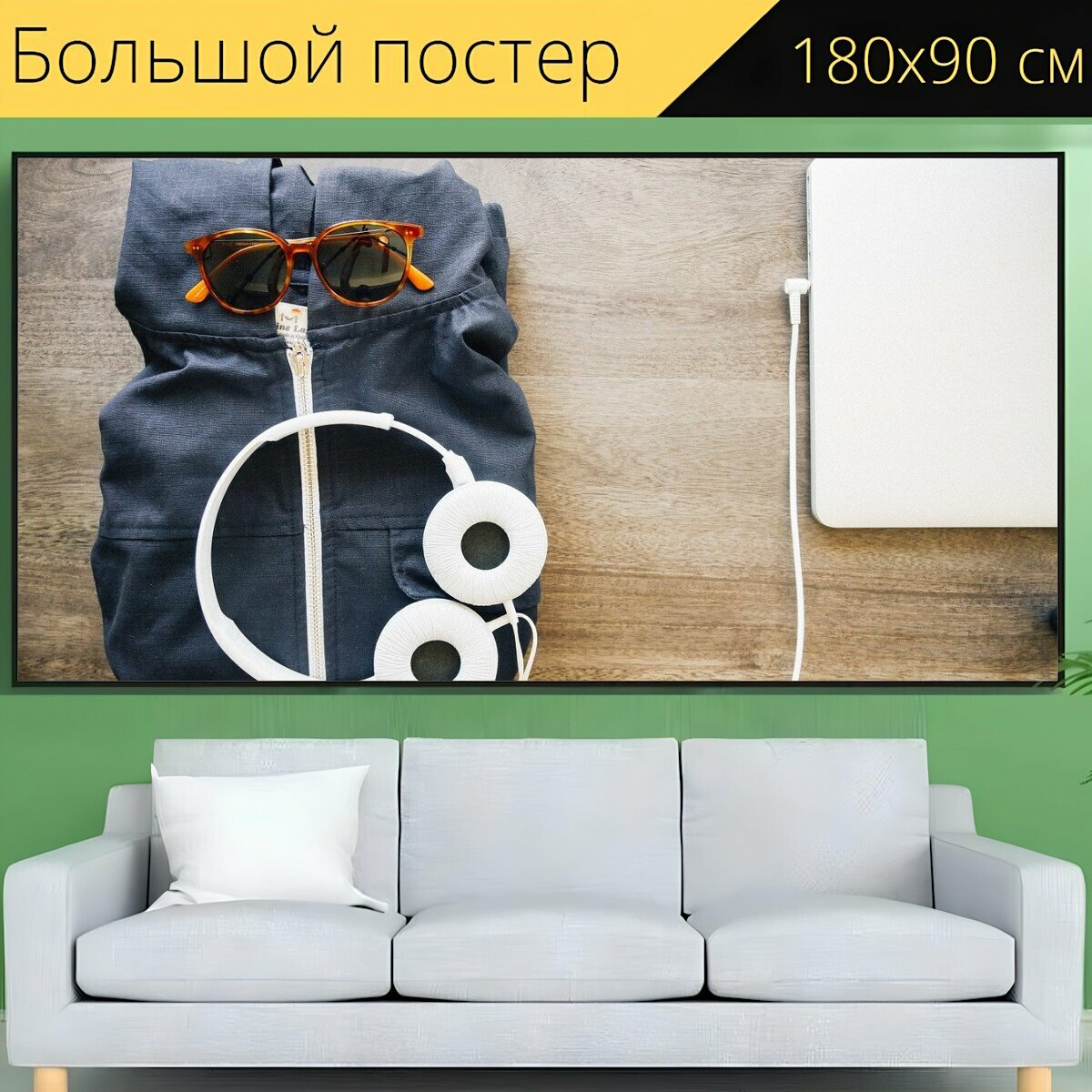 Большой постер "Наушники, ноутбук, повседневный" 180 x 90 см. для интерьера интересное: