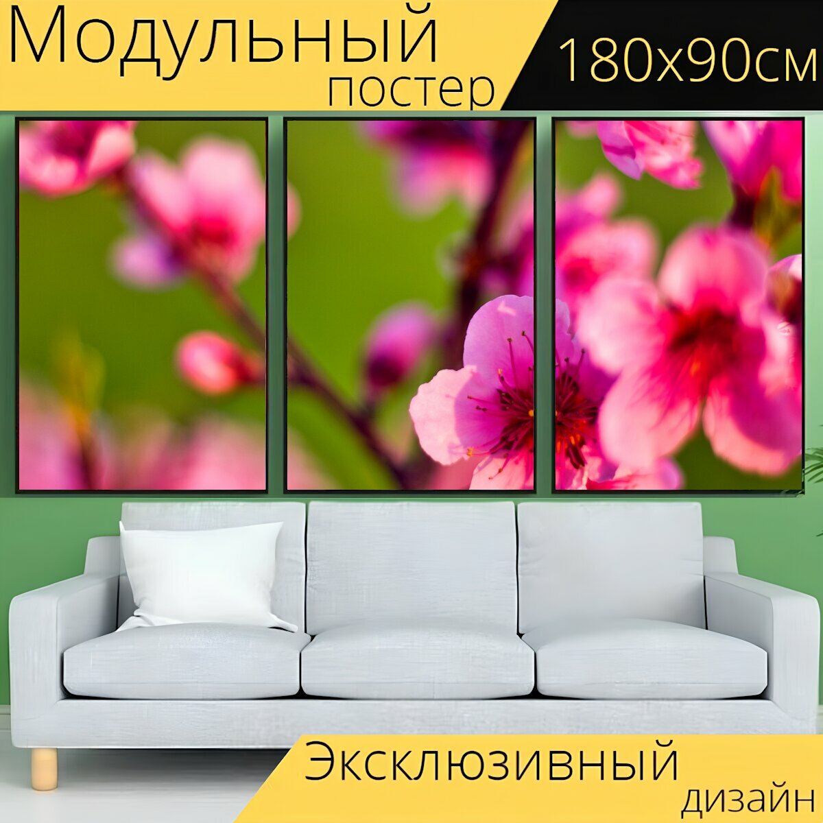 Модульный постер "Песко, цветы, розовый" 180 x 90 см. для интерьера интересное: