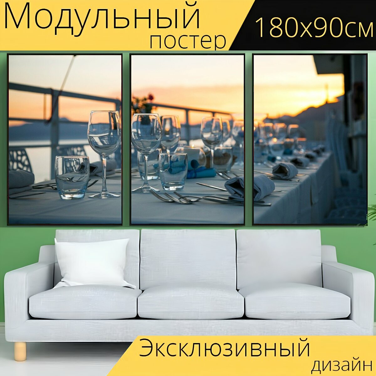 Купить Модульный постер "Стол, стеклянная посуда, столовые приборы" 180 x 90 см. для интерьера