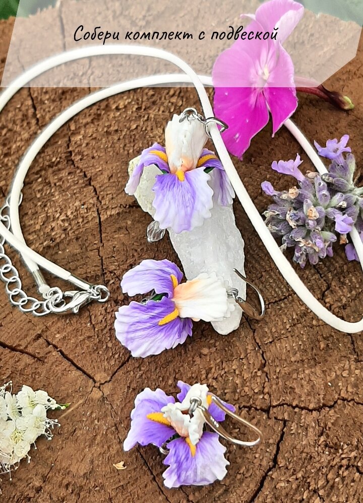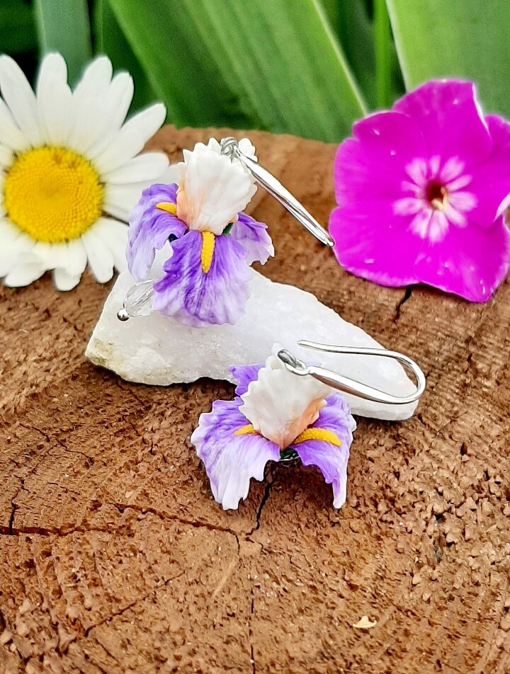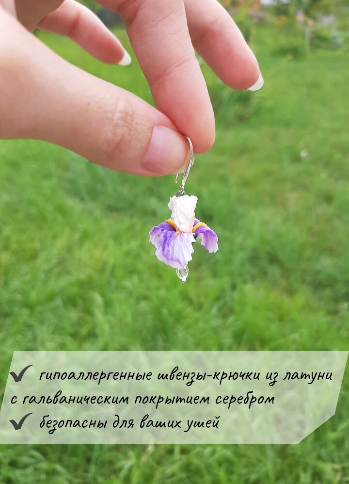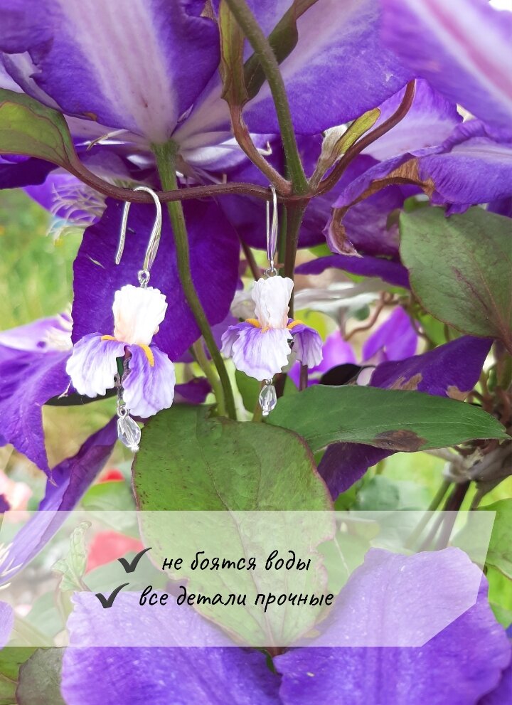Серьги с ирисами из полимерной глины ручной работы интересное: