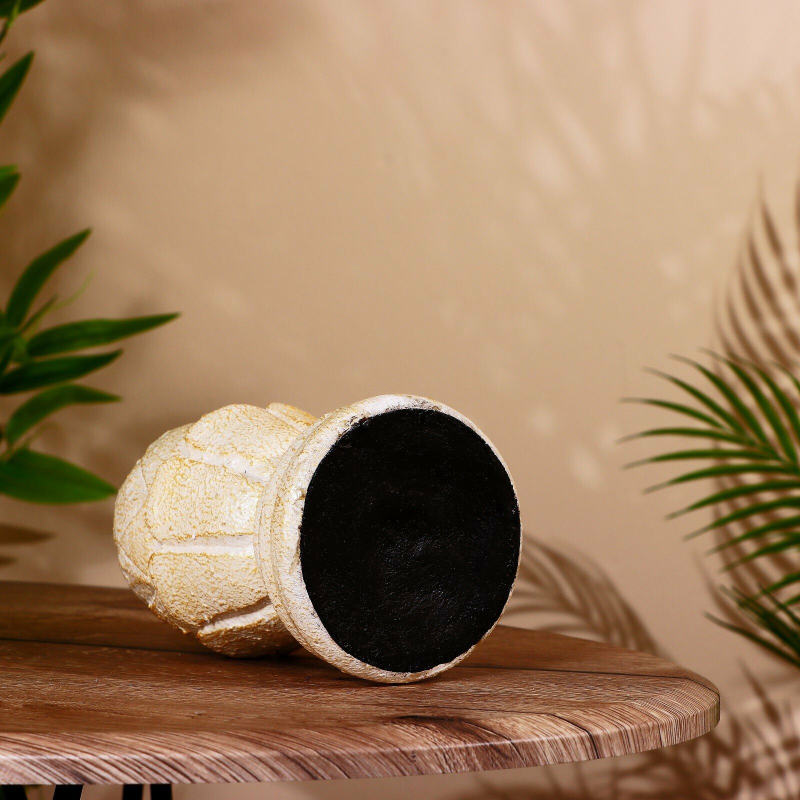 Сувенир вазон металл, керамика "Тыква с листочком" черная с белым 14,3х14,3х21 см 9691069