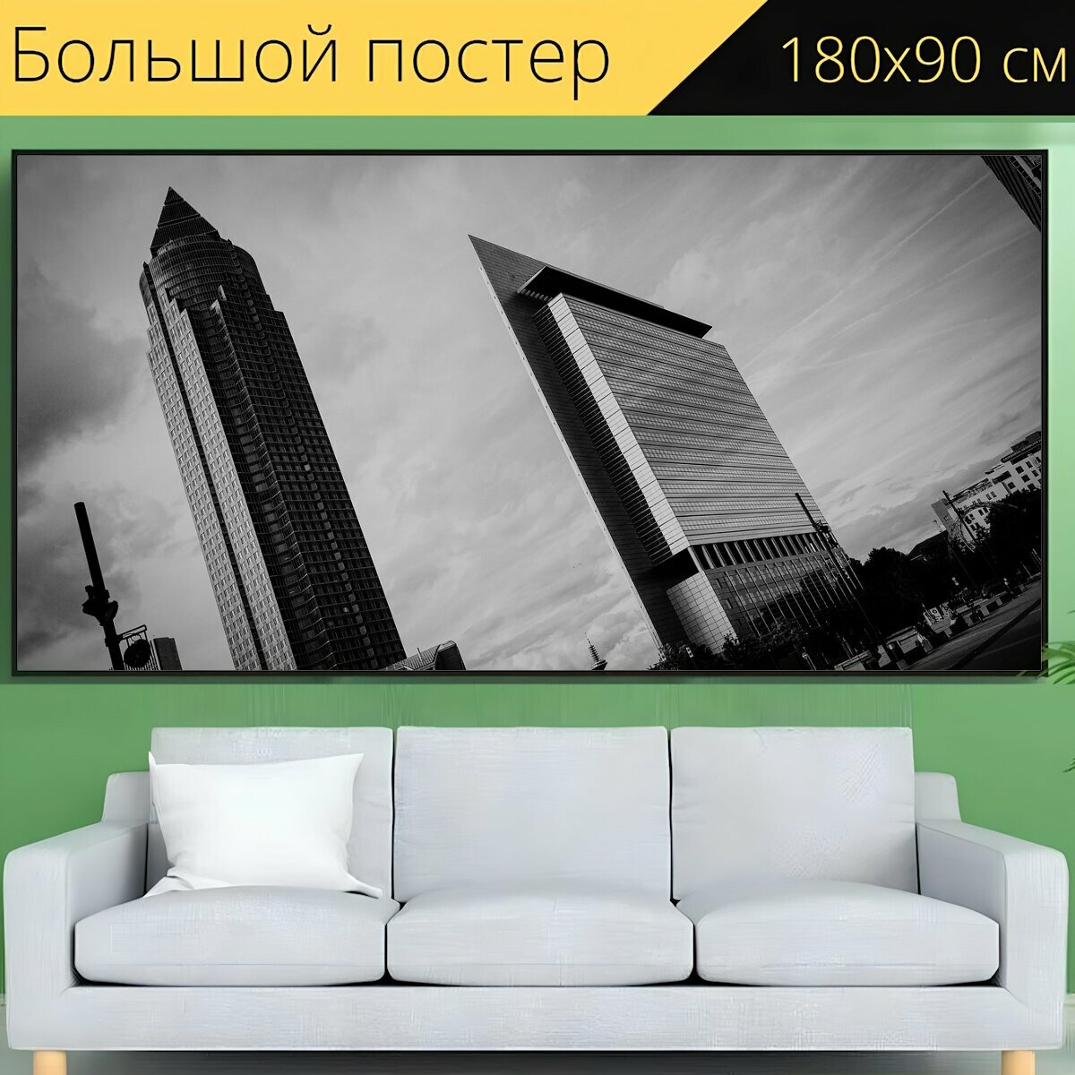 Большой постер "Франкфурт, здания, небоскребы" 180 x 90 см. для интерьера интересное: