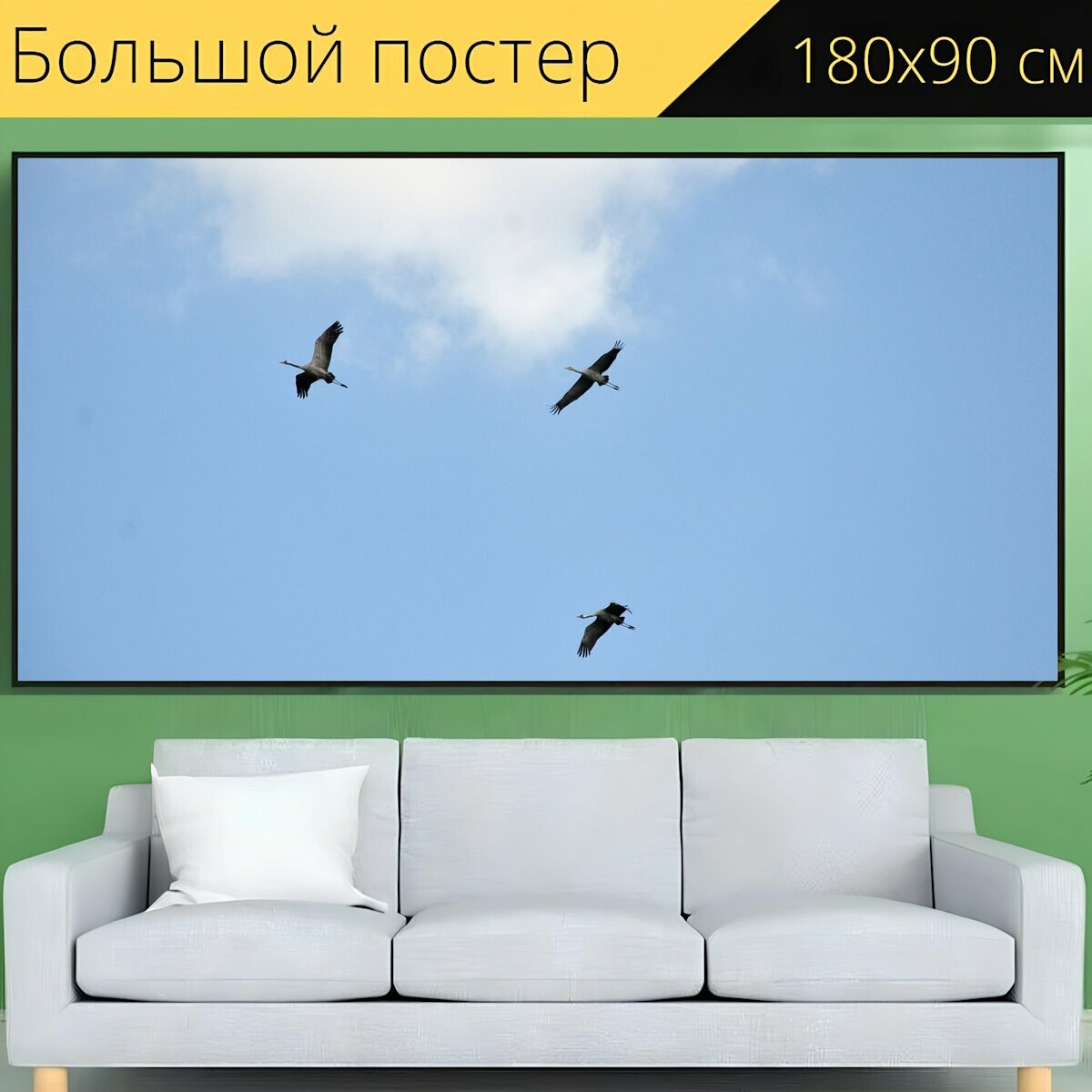 Большой постер "Кран, рейс, птица" 180 x 90 см. для интерьера интересное: