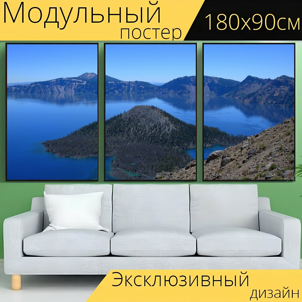 Модульный постер "Кратерное озеро, орегон, пейзаж" 180 x 90 см. для интерьера интересное: