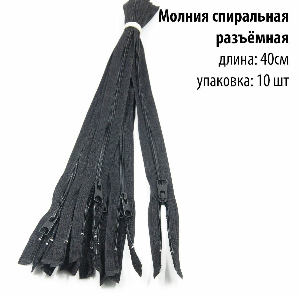 Купить Молния спиральная разъёмная 40 см, черная, ТИП 5, 10 штук