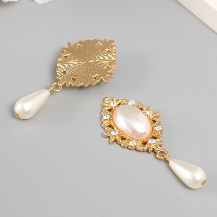 Купить Декор для творчества металл, пластик "Жемчужина в цветах с подвеской" 5,4х2,5х0,7 см
