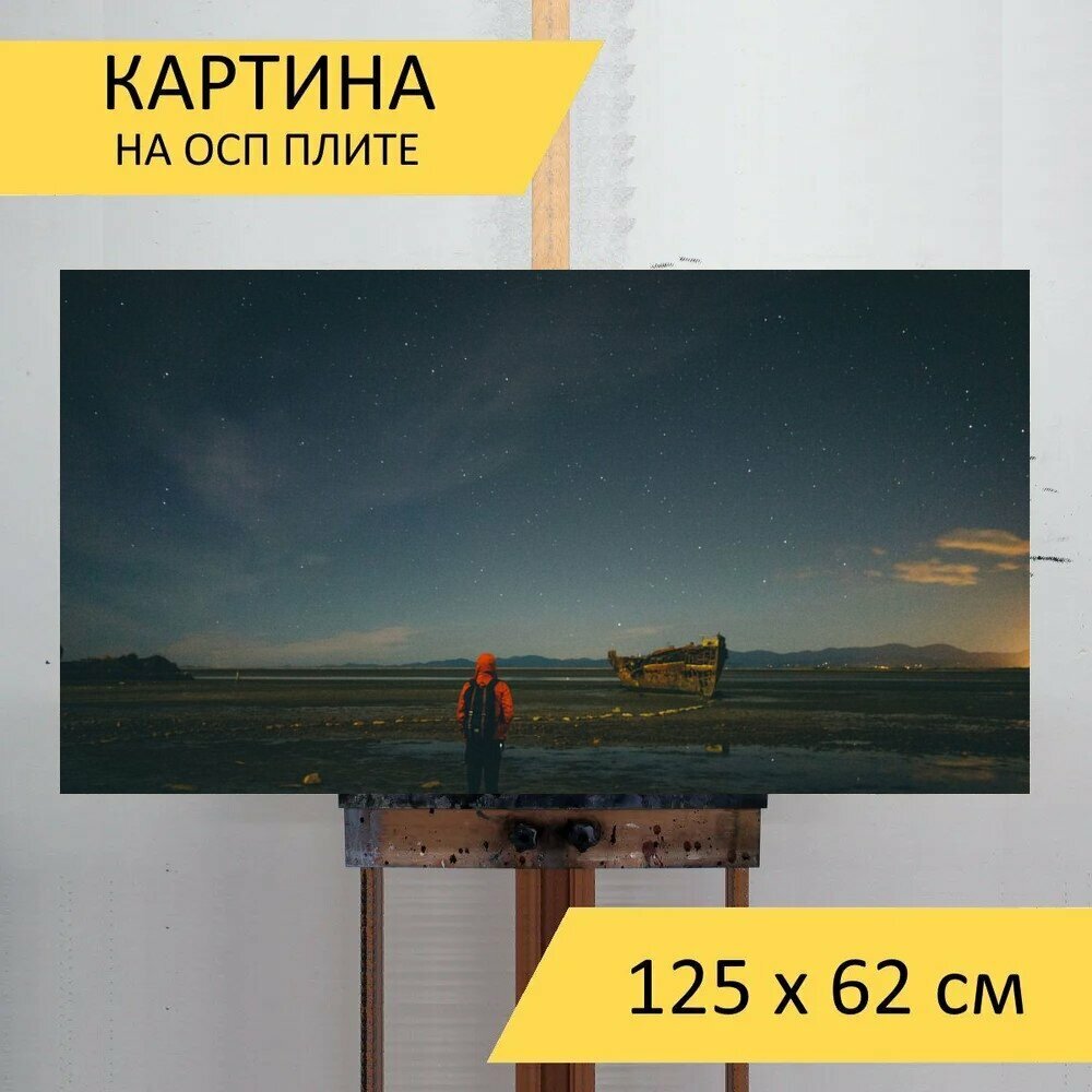 Картина на ОСП 125х62 см. "Ночь, звезды тьмы, приключение" горизонтальная, для интерьера, с креплениями интересное: