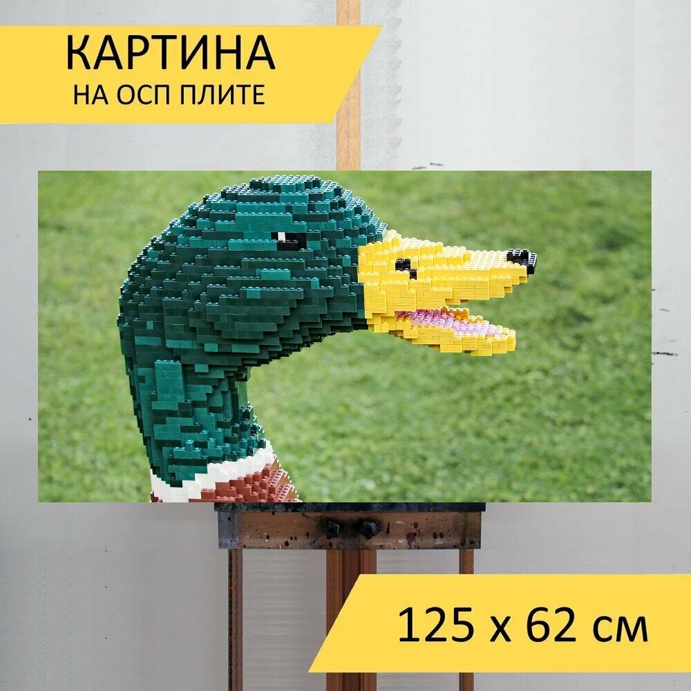 Картина на ОСП 125х62 см. "Конструктор лего, утка, селезень" горизонтальная, для интерьера, с креплениями интересное: