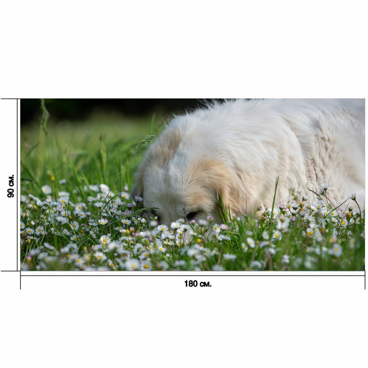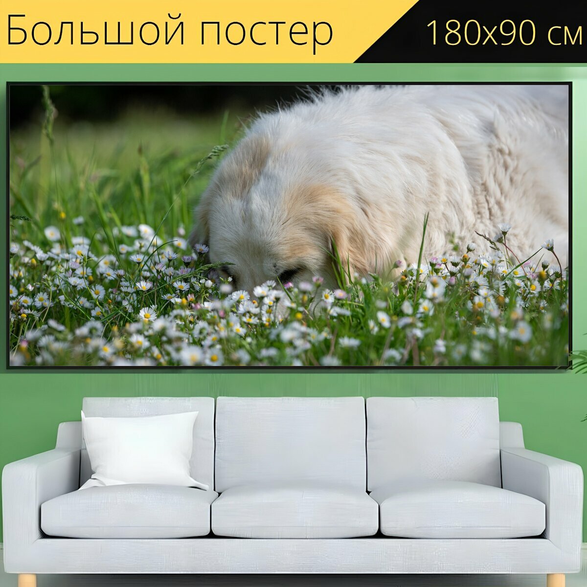 Большой постер "Собака, луг, цветочный луг" 180 x 90 см. для интерьера интересное: