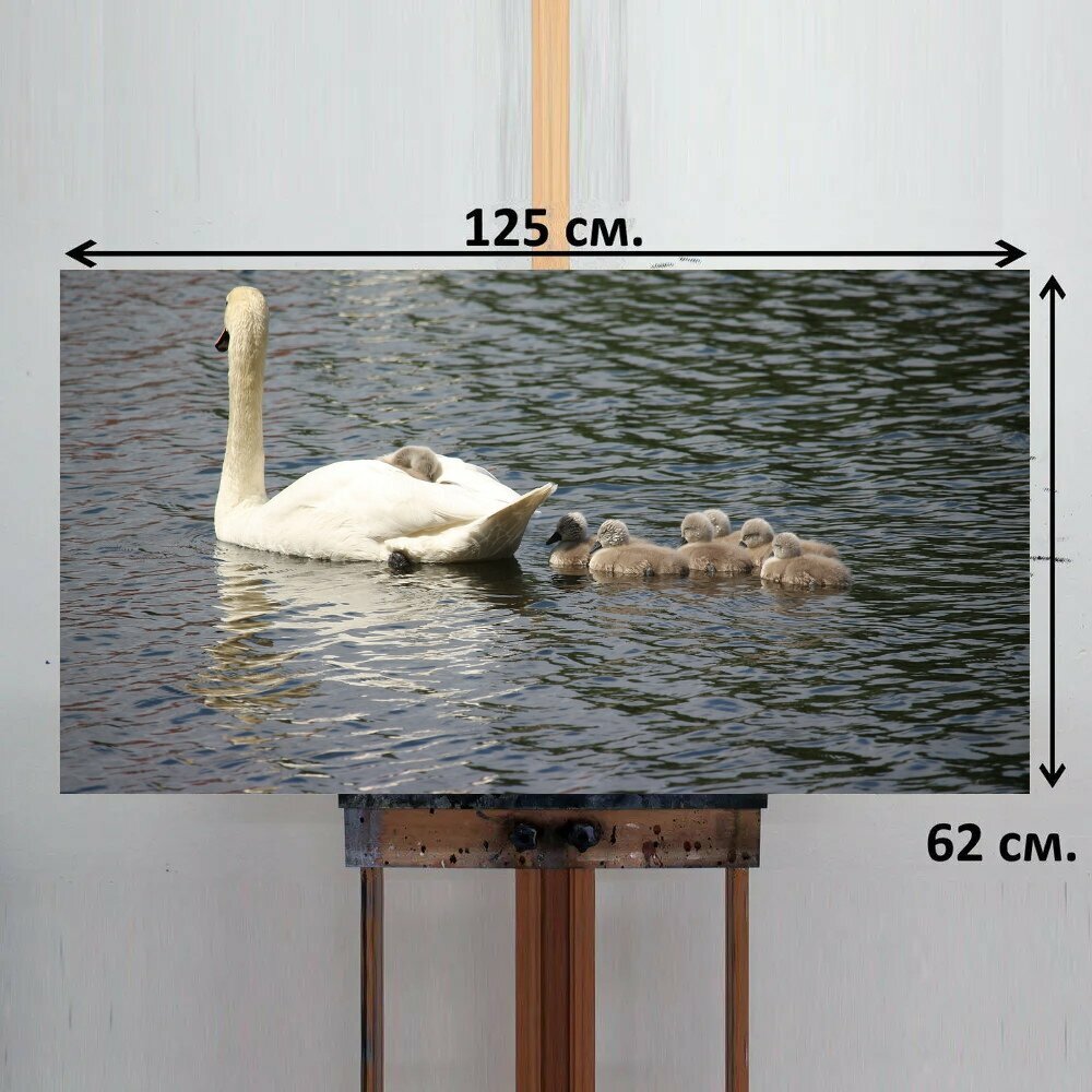 Картина на ОСП 125х62 см. "Лебедь, лебеди, водоплавающая птица" горизонтальная, для интерьера, с креплениями интересное:
