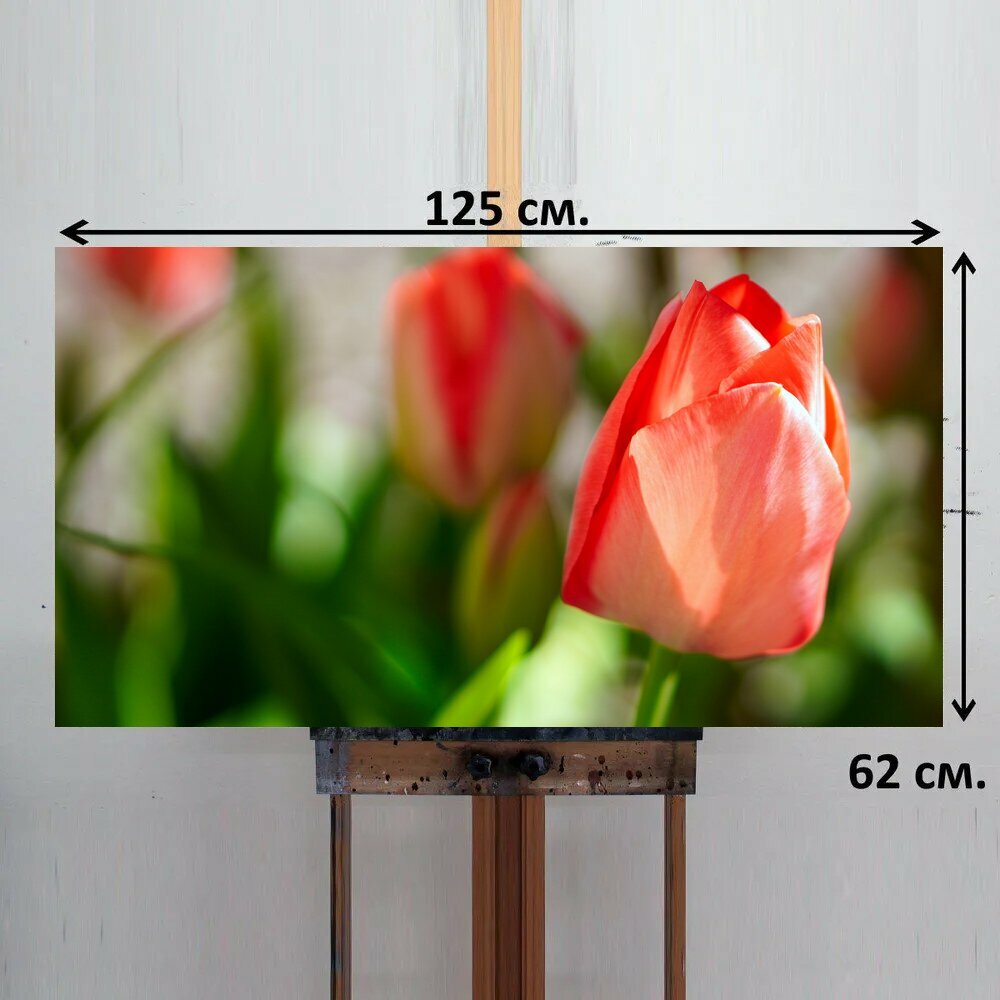Картина на ОСП 125х62 см. "Тюльпаны, цвести, весна" горизонтальная, для интерьера, с креплениями интересное: