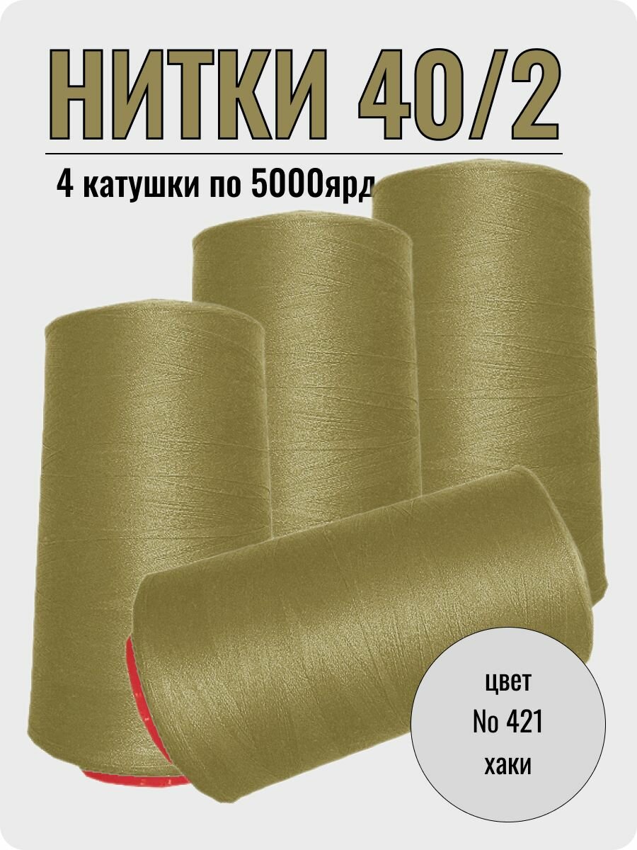 Нитки швейные 40/2 полиэстер 5000 ярд цвет 421 хаки 4шт интересное: