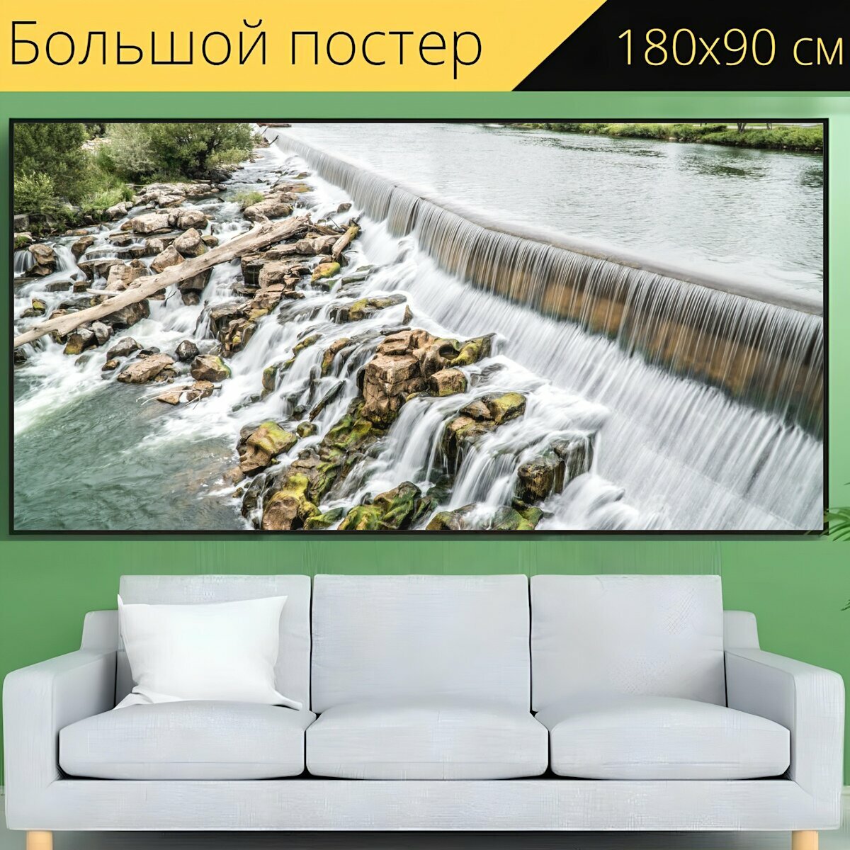 Большой постер "Айдахо фолс, вода, водопад" 180 x 90 см. для интерьера интересное: