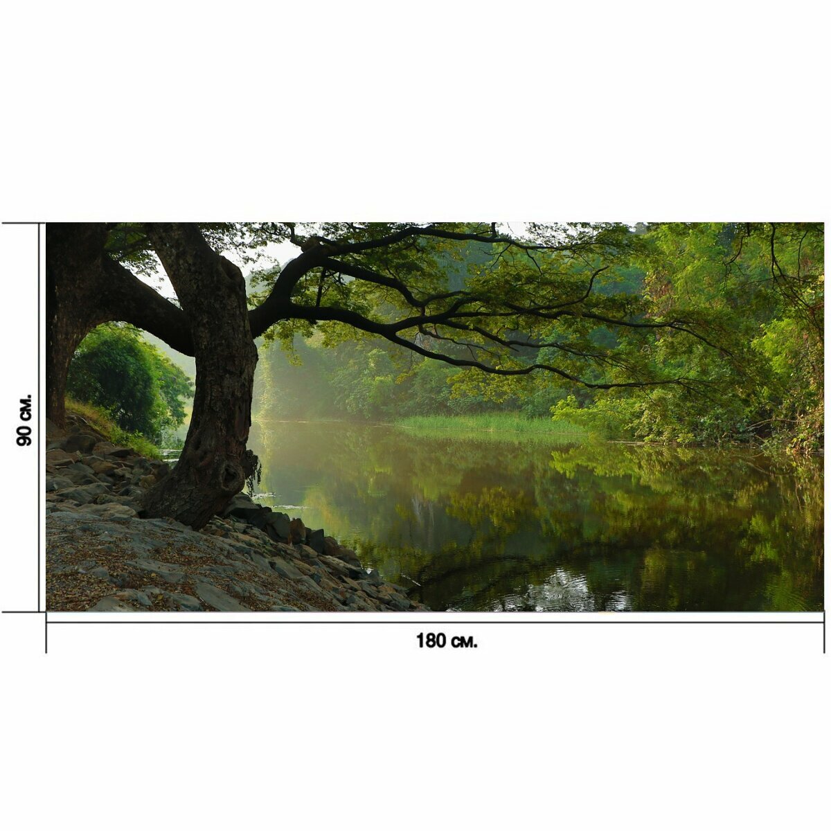 Большой постер "Река, набережная, дерево" 180 x 90 см. для интерьера интересное: