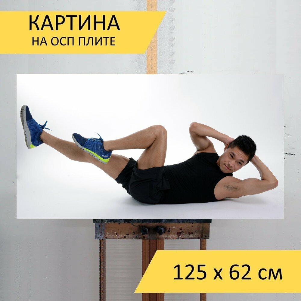 Картина на ОСП 125х62 см. "Абс, пресс, упражнение" горизонтальная, для интерьера, с креплениями интересное: