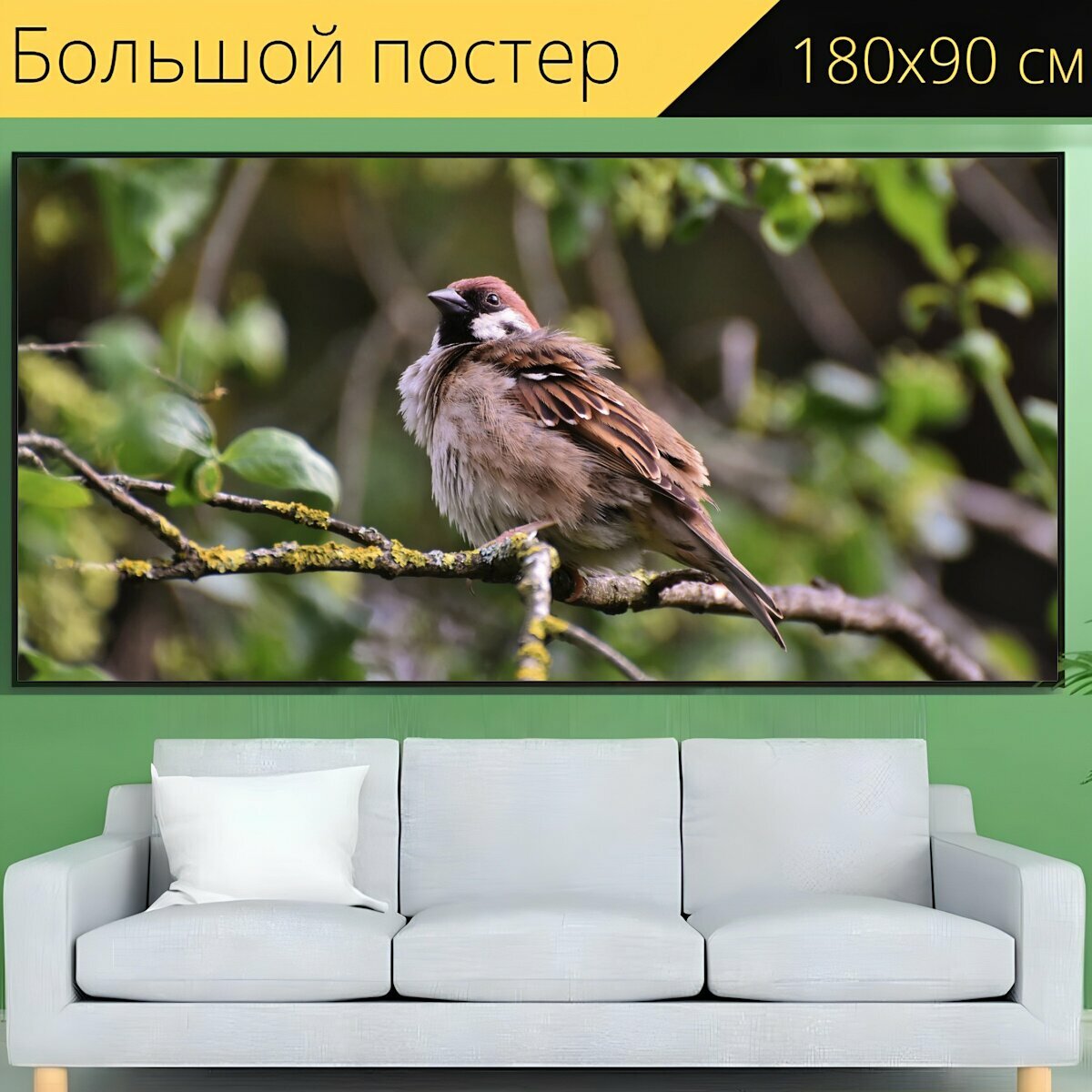 Большой постер "Воробей, сперлинг, птица" 180 x 90 см. для интерьера интересное: