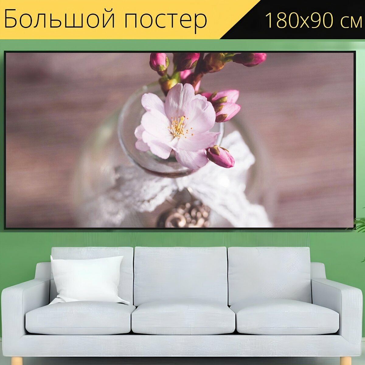 Большой постер "Вишни в цвету, ветвь, розовый" 180 x 90 см. для интерьера интересное: