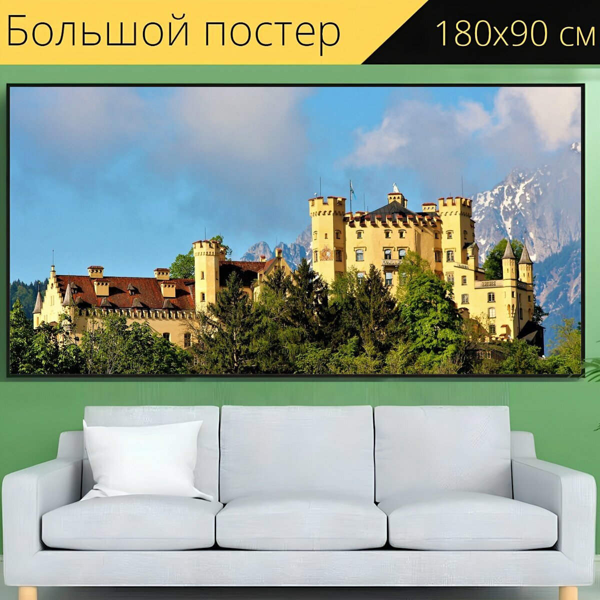Большой постер "Замок хоэншвангау, замок, архитектуры" 180 x 90 см. для интерьера интересное: