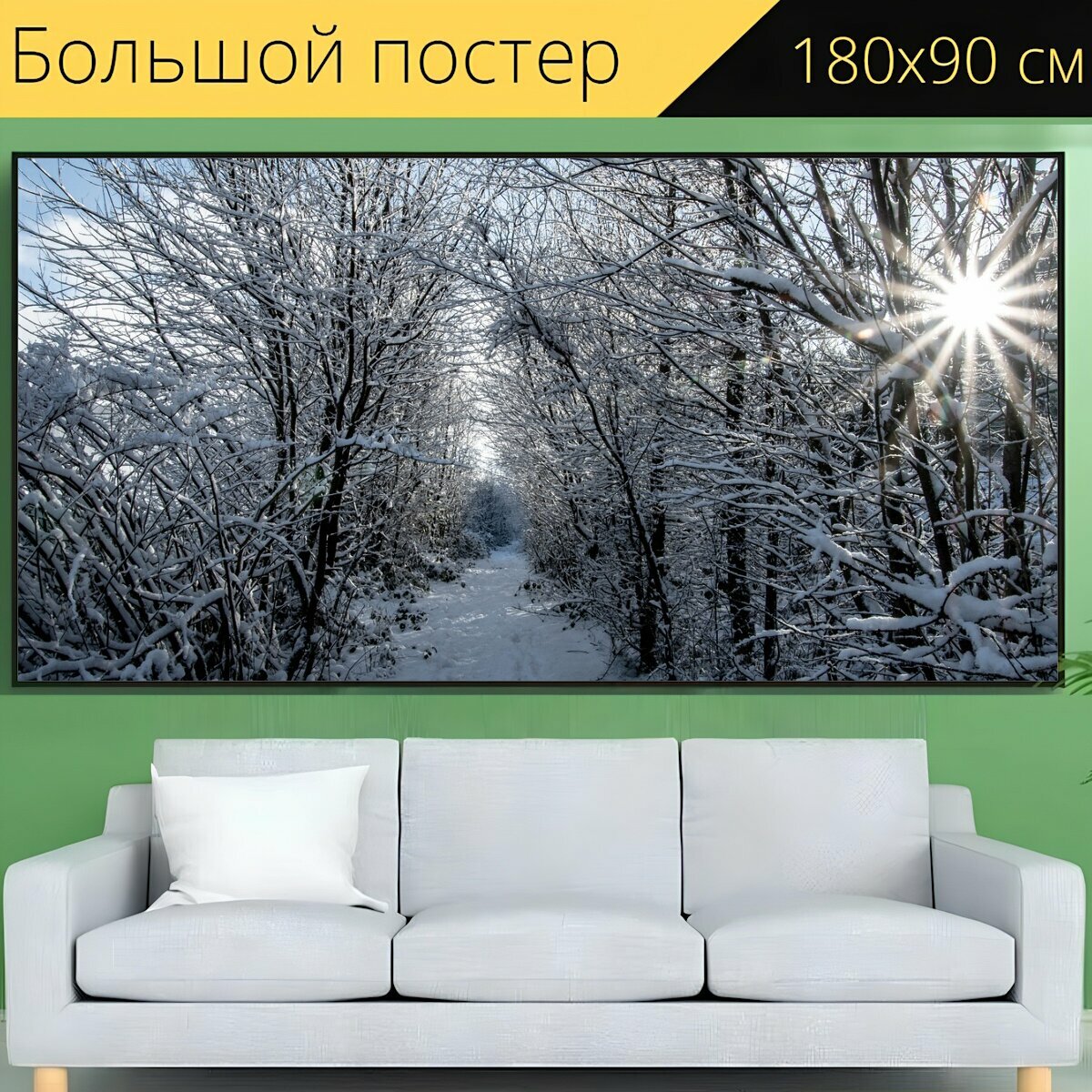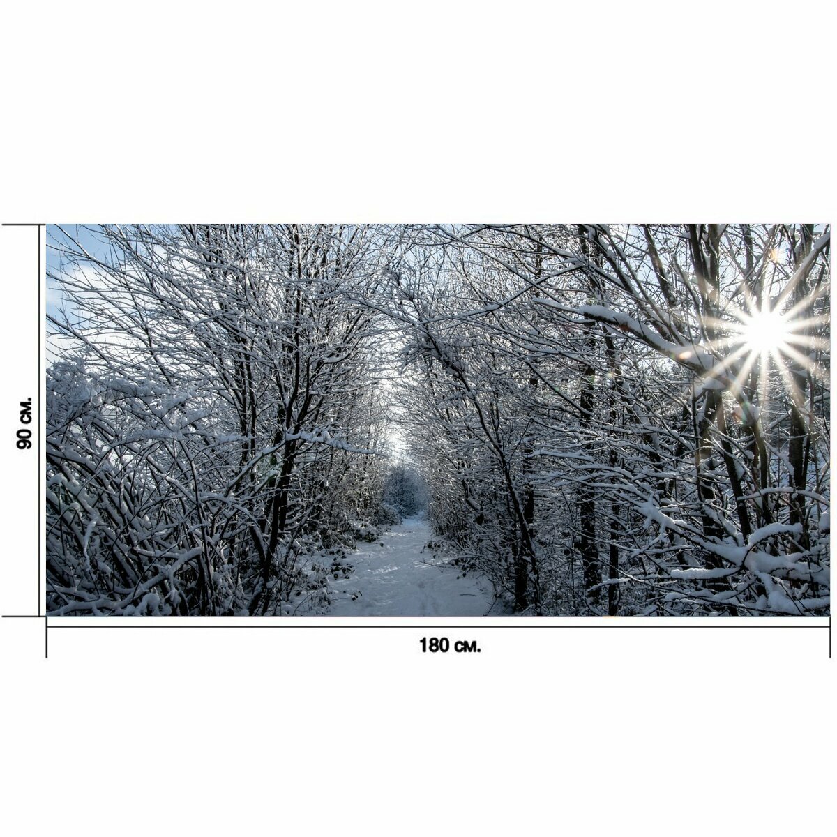 Большой постер "Солнечный свет, снег, деревья" 180 x 90 см. для интерьера интересное: