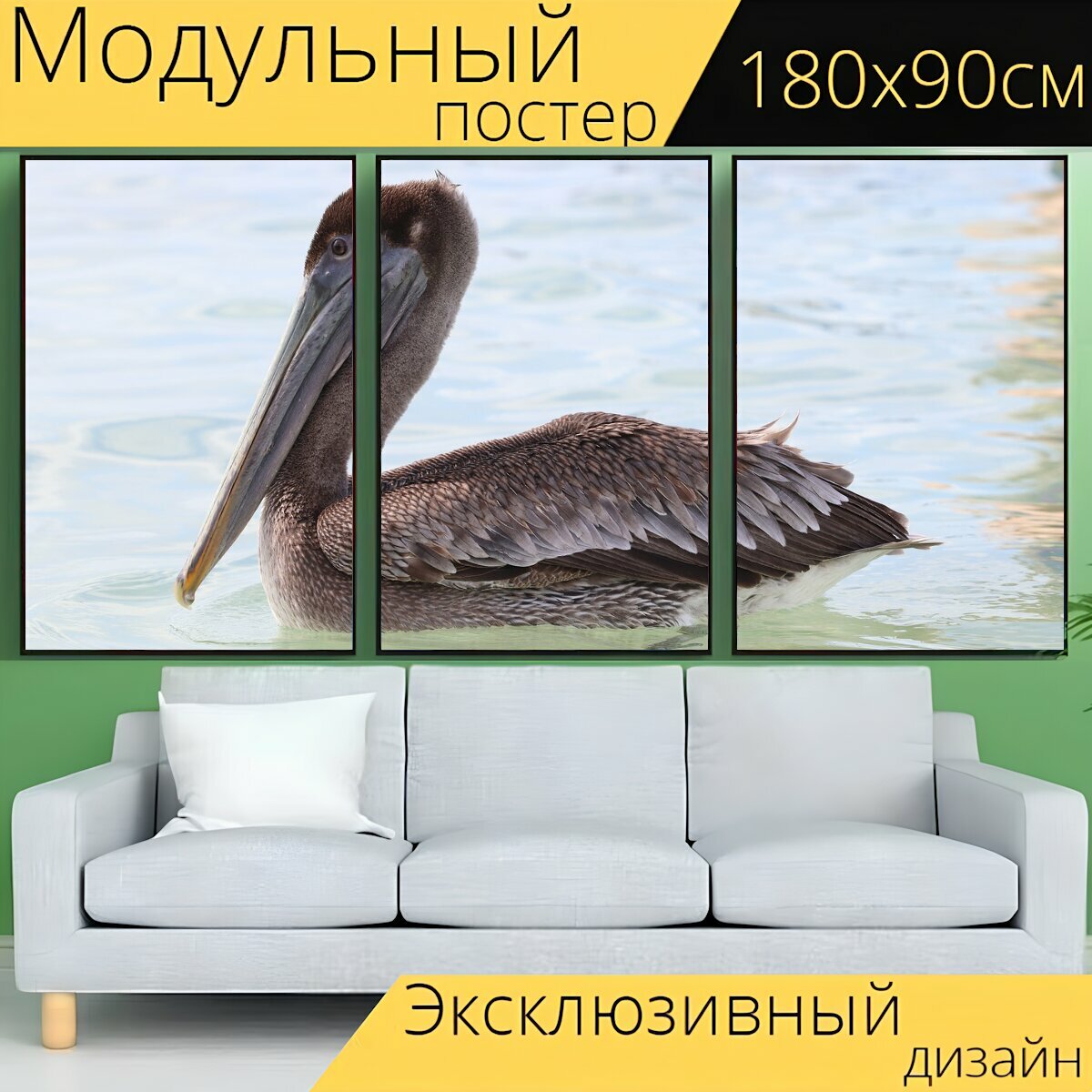 Модульный постер "Пеликан, птица, природа" 180 x 90 см. для интерьера интересное: