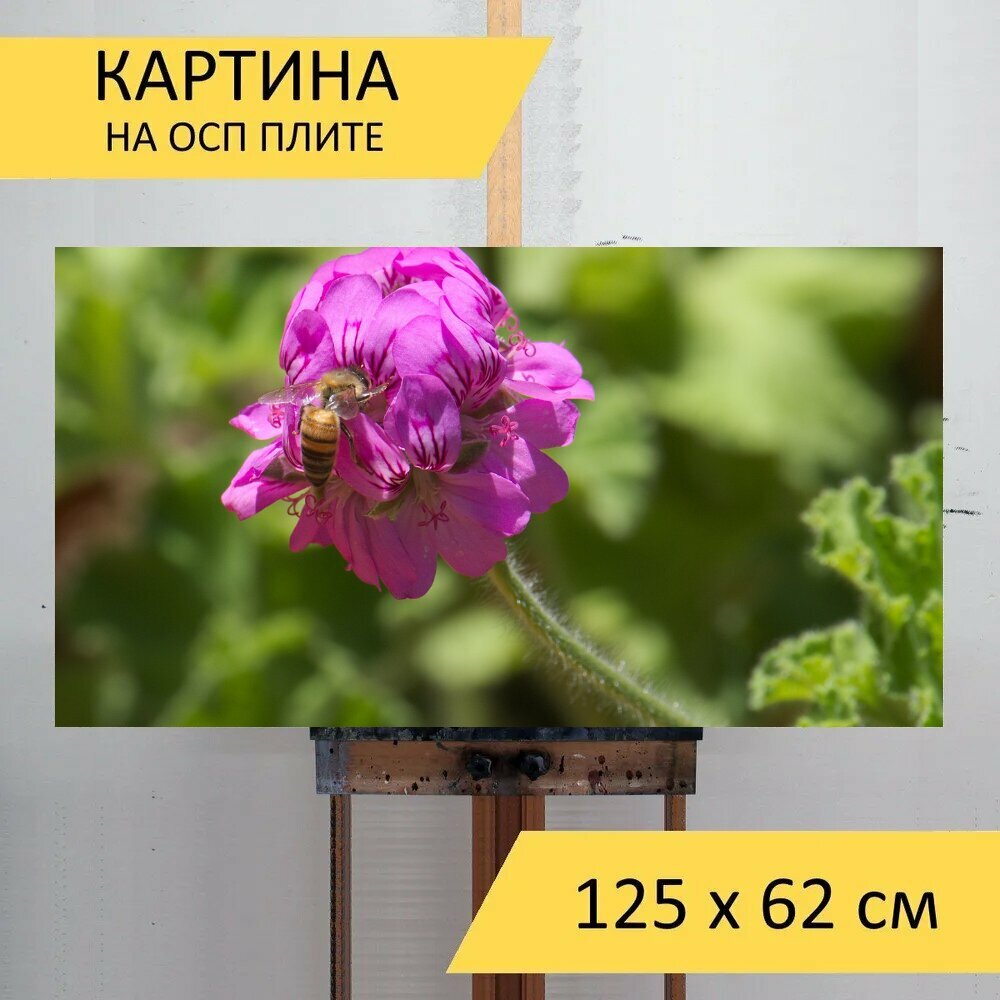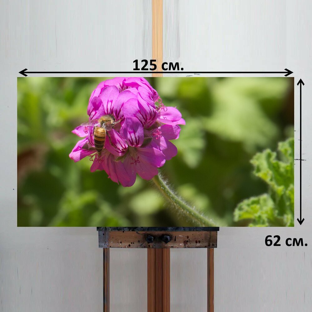 Картина на ОСП 125х62 см. "Цветок, пчела, природа" горизонтальная, для интерьера, с креплениями интересное: