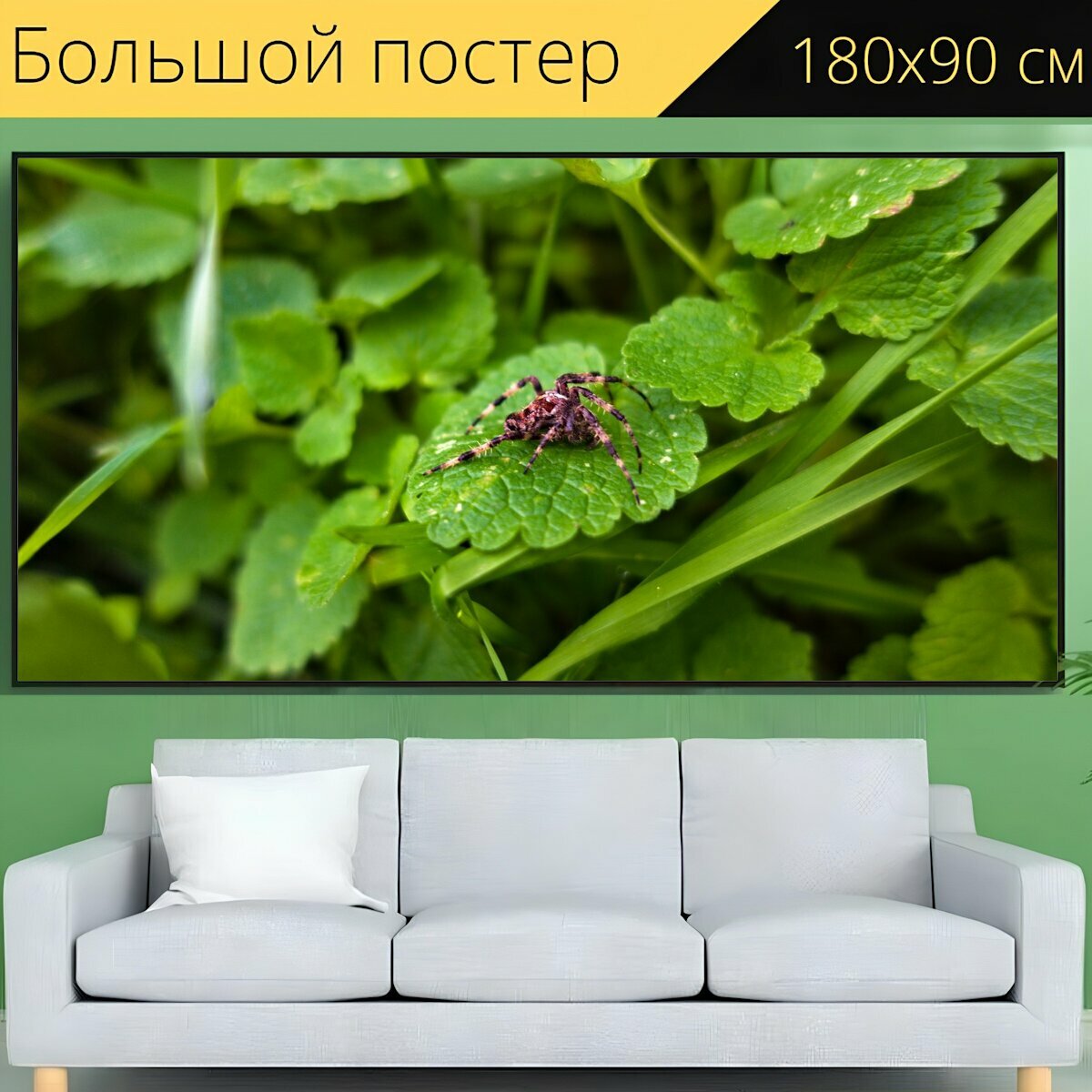 Большой постер "Паук, листы, природа" 180 x 90 см. для интерьера интересное: