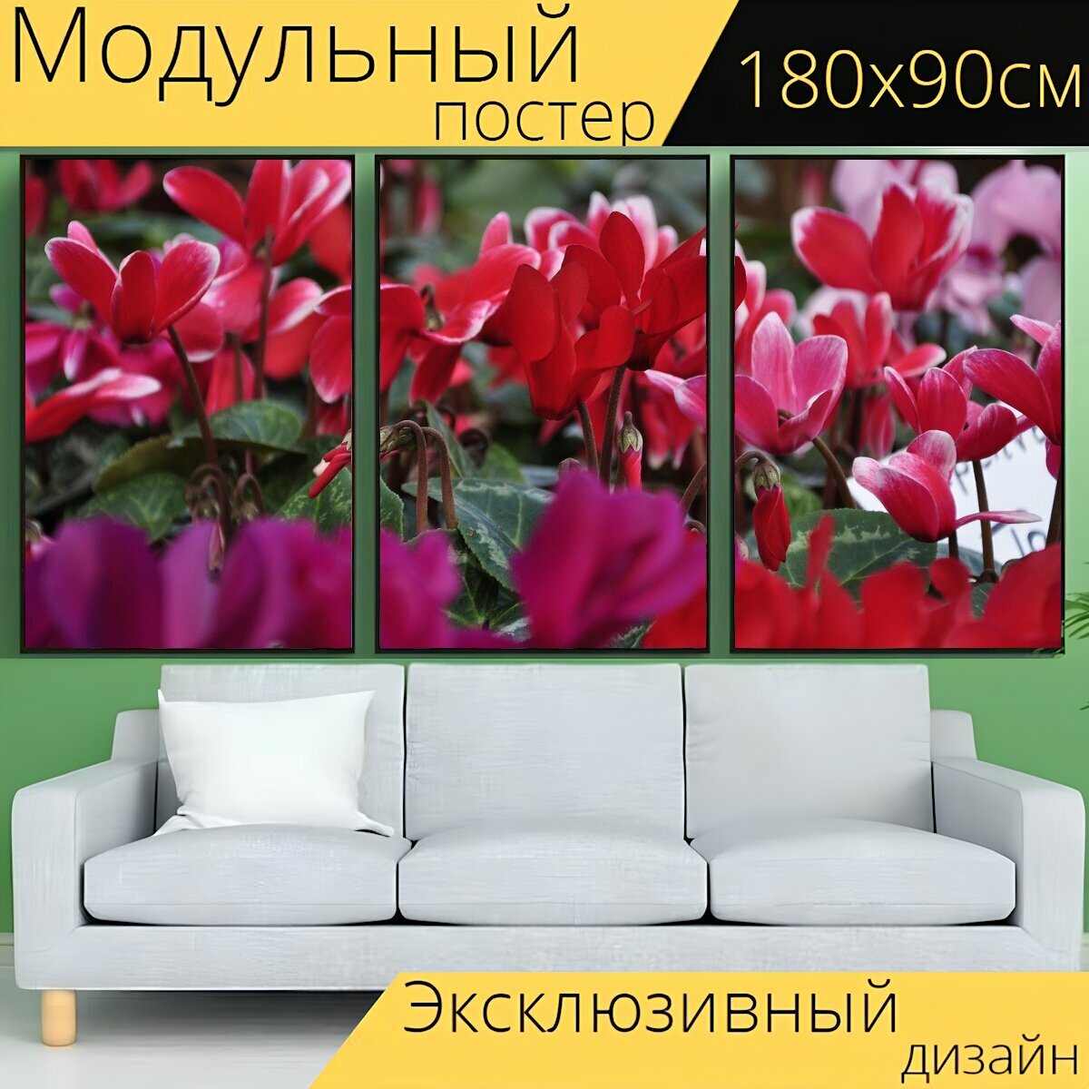 Модульный постер "Цветок, цикламен, красный" 180 x 90 см. для интерьера интересное:
