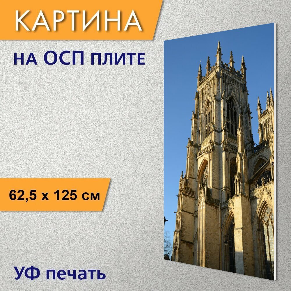 Вертикальная картина на ОСП "Йоркский собор, кафедральный собор, церковь" 62x125 см. для интерьериа интересное: