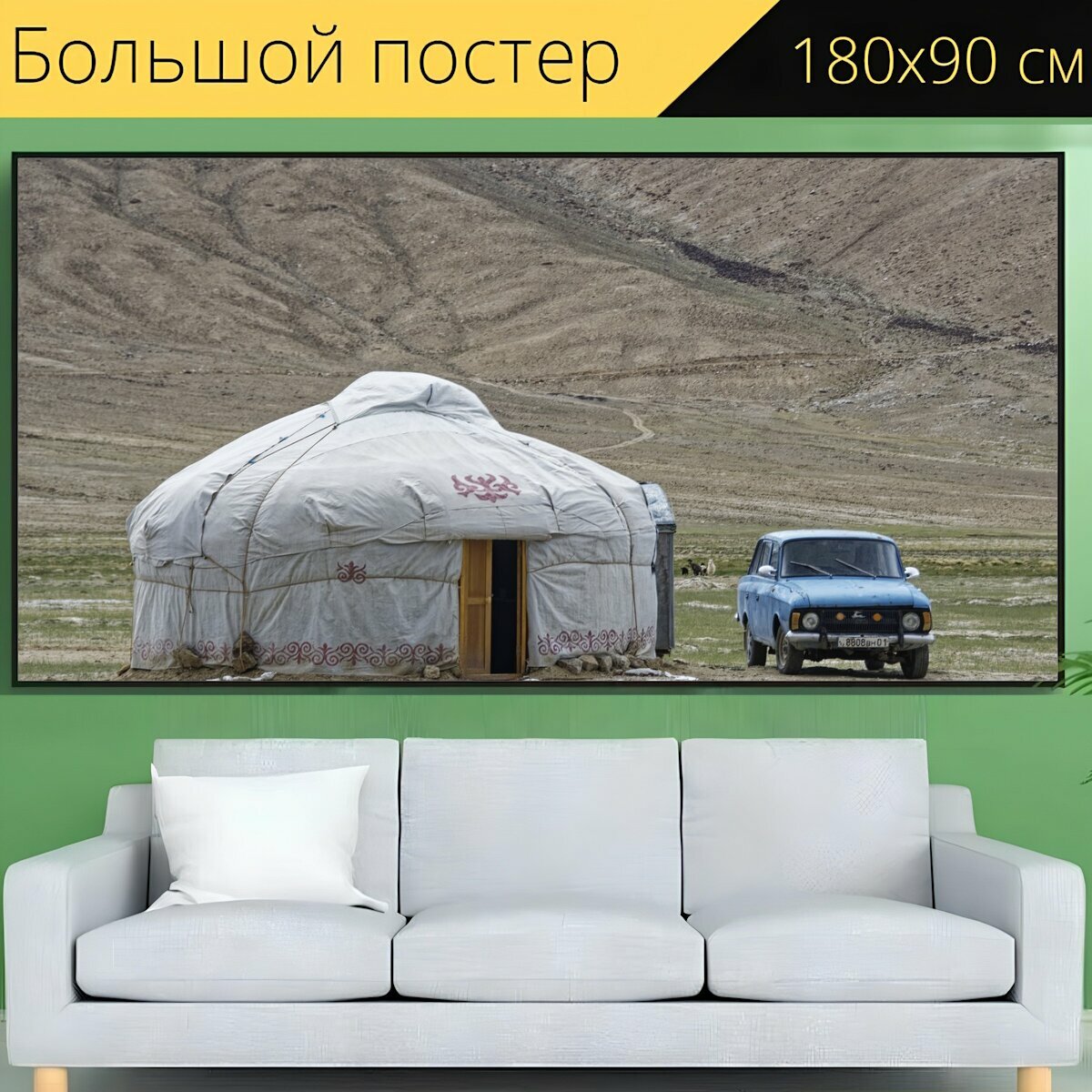 Большой постер "Юрта, природа, пейзаж" 180 x 90 см. для интерьера интересное: