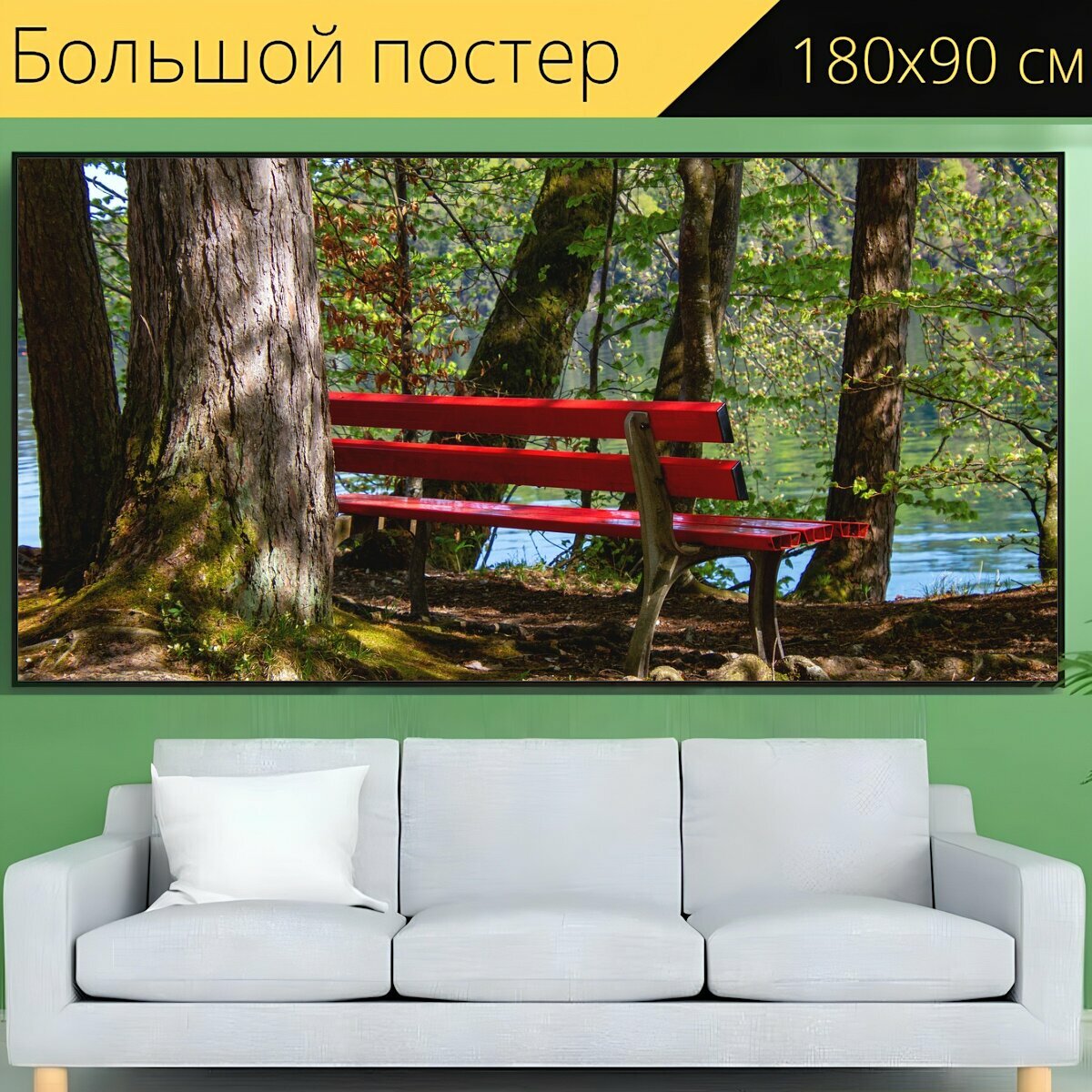 Купить Большой постер "Банк, красный, природа" 180 x 90 см. для интерьера
