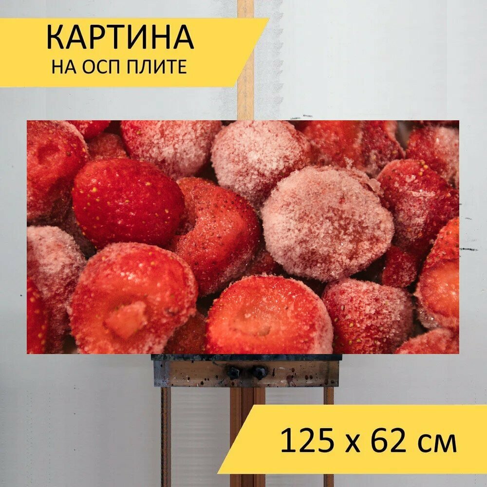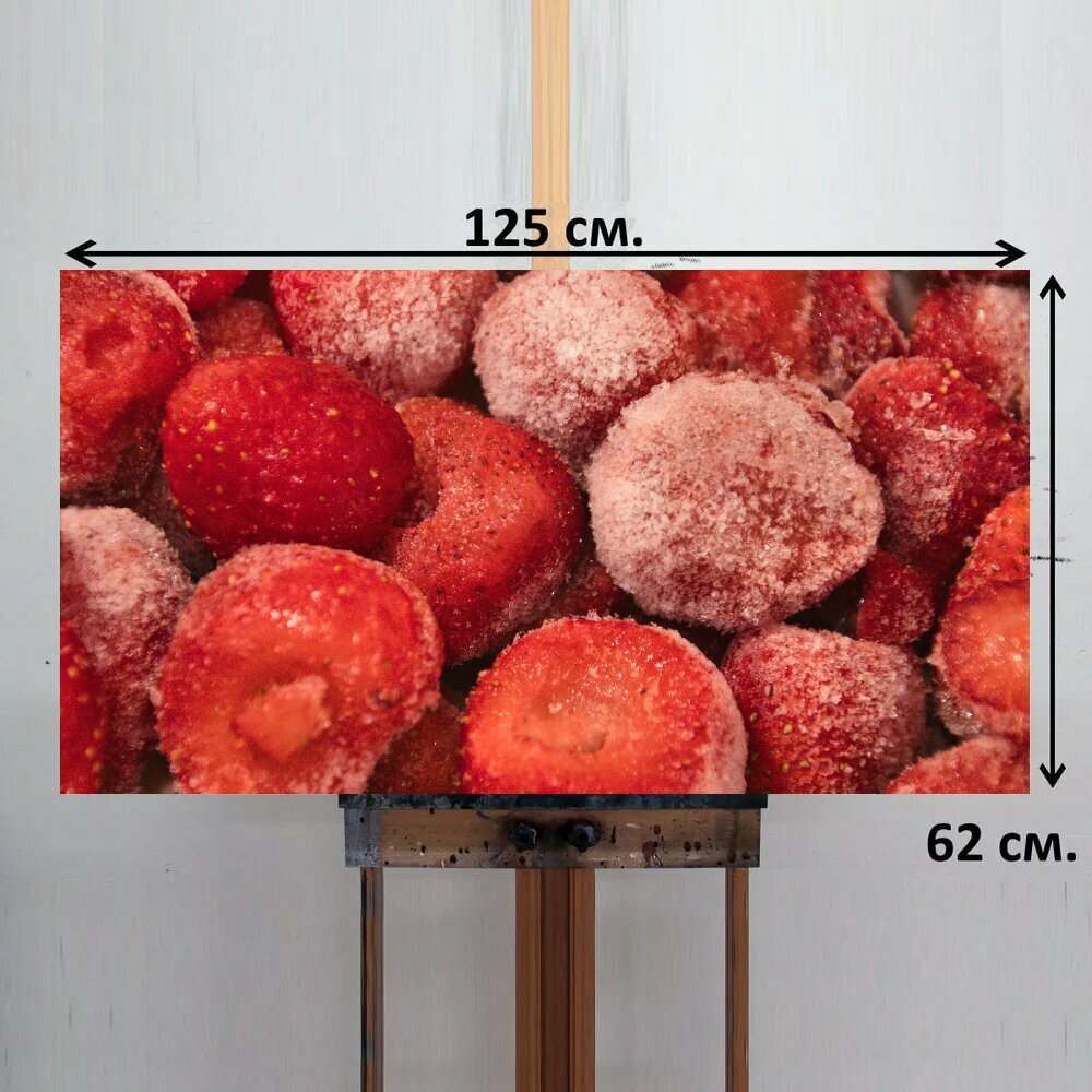 Картина на ОСП 125х62 см. "Замороженный, клубника, десерт" горизонтальная, для интерьера, с креплениями интересное: