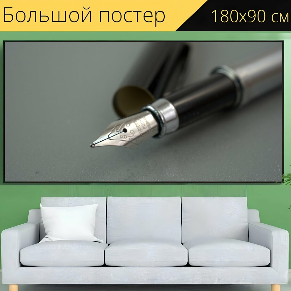 Большой постер "Чернильная ручка, запись, чернила" 180 x 90 см. для интерьера интересное: