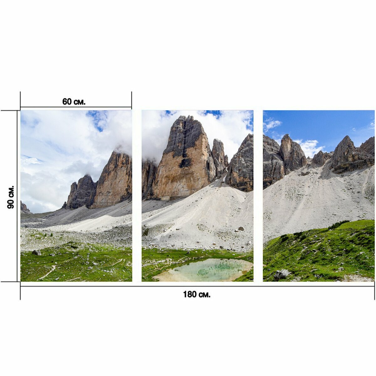 Ниже Вы можете прочитать отзывы на Модульный постер "Горы, три вершины, доломиты" 180 x 90 см. для интерьера, ознакомится с подробными характеристиками, посмотреть интересные обзоры и фотографии на Модульный постер "Горы, три вершины, доломиты" 180 x 90 см. для интерьера.