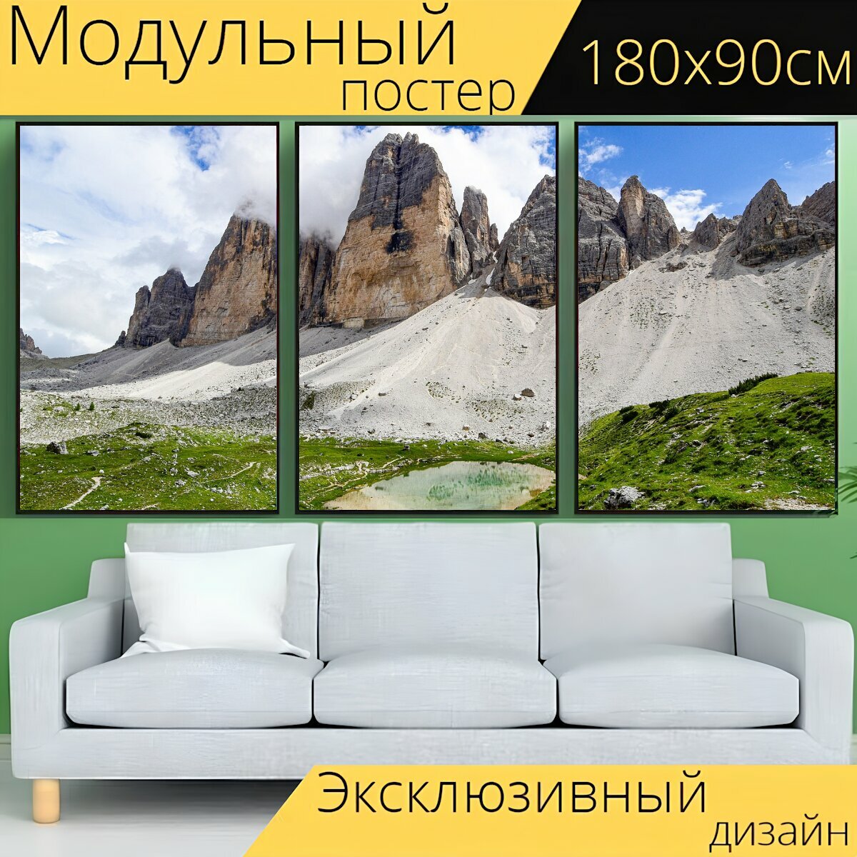 Модульный постер "Горы, три вершины, доломиты" 180 x 90 см. для интерьера интересное: