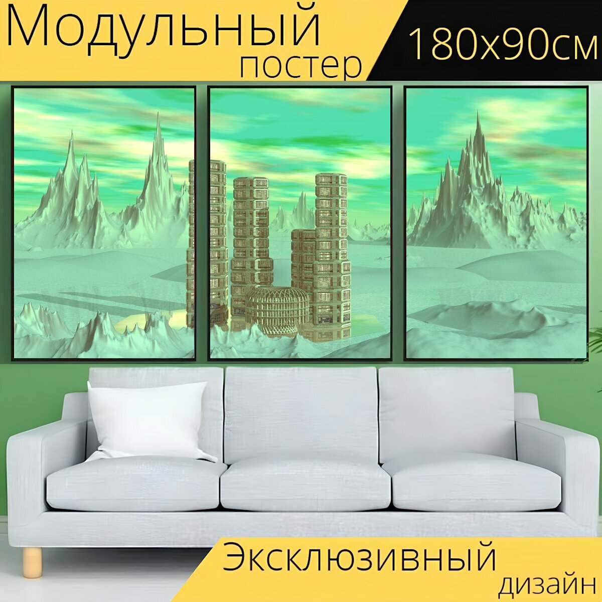 Купить Модульный постер "Город, планета, здание" 180 x 90 см. для интерьера