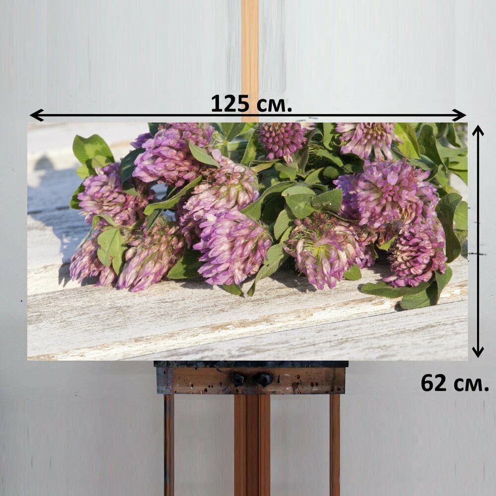 Картина на ОСП 125х62 см. "Красный клевер, луговой завод, менопауза" горизонтальная, для интерьера, с креплениями интересное: