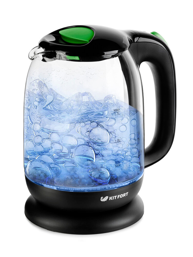 Электрочайник Kitfort KT-625-1 [пластик, термостойкое стекло, 1.7 л, 2200 Вт, фильтр, дисковый нагре