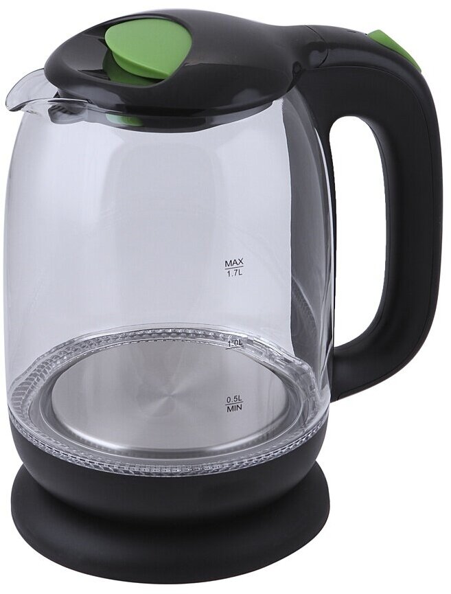Чайник электрический Kitfort КТ-625-2 1.7л. 2200Вт черный/зеленый (корпус: стекло)