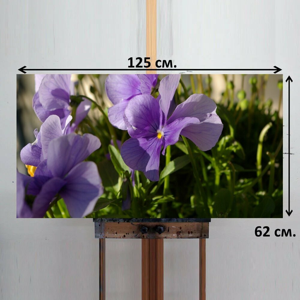 Картина на ОСП 125х62 см. "Цветы, фиолетовый, застенчивый" горизонтальная, для интерьера, с креплениями интересное: