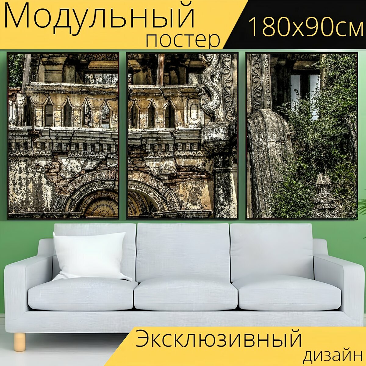 Купить Модульный постер "Храм, руины, землетрясение" 180 x 90 см. для интерьера